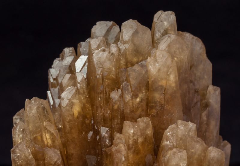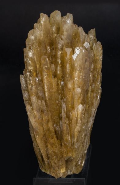 Aggregate of thick and extraordinarily elongated Celestine crystals, which form very marked, translucent, parallel growths of very dense golden to smoky color. A classic from Poland that comes from the Philippe Morelon collection (No. 1013), whose label we will send to the buyer.Machów Mine, Tarnobrzeg, Subcarpathian Voivodeship Poland