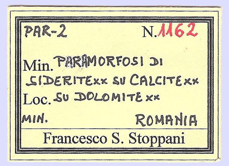 Two generations of Siderite crystals on matrix. The first forms a tapestry of small thick-tabular crystals with very well defined forms and the second is with larger polycrystalline aggregates with very curved faces.The sample is with a label from the Stoppani collection that well send to the buyer