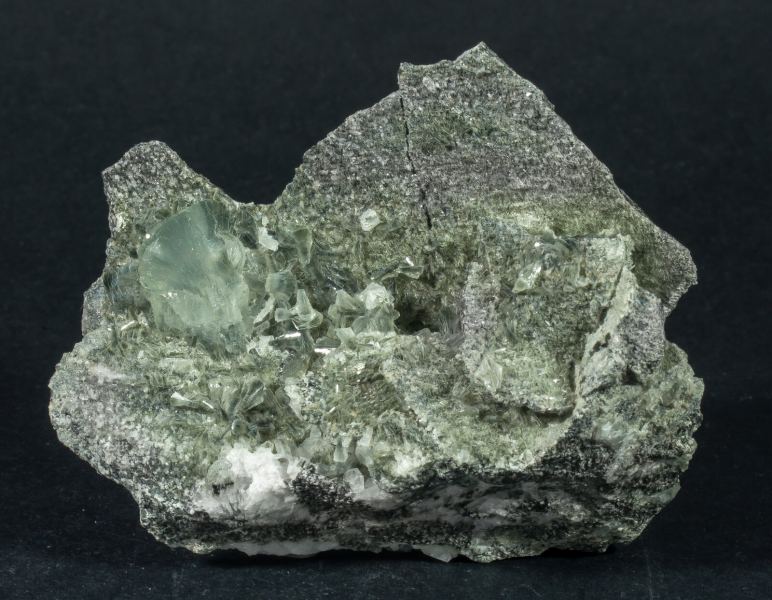 Prehnite with Epidote and Actinolite (variety byssolite)