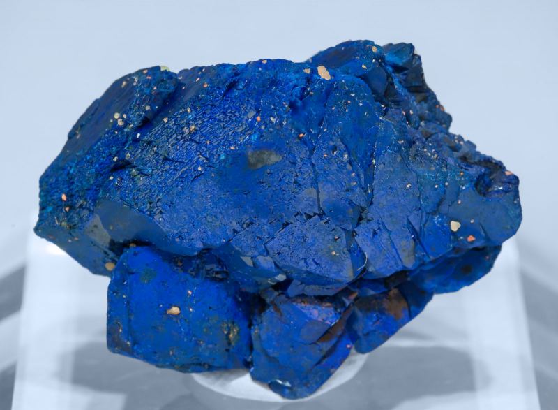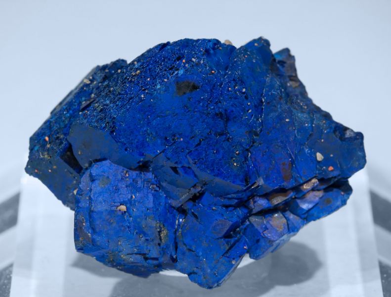Group of very sharp and flattened crystals with the dominant faces of a rhombohedron, with very well defined faces and edges and a clearer color than usual for the Chessy pieces. The sample is from recent and surprising finds at the old dumps area at that mine.Chessy-les-Mines, Les Bois d'Oingt, Villefranche-sur-Saône, Rhône, Auvergne-Rhône-Alpes France (2010)
