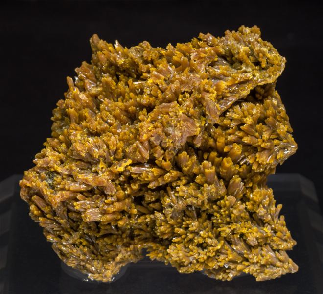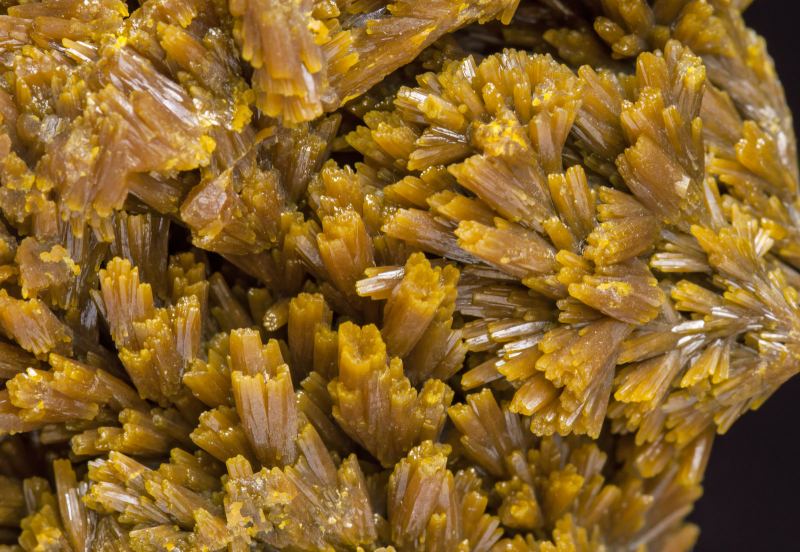 Arborescent growths of crystals with a spindled shape, and with very deeply hoppered terminations. The very bright crystals have an unusually intense orange color. A French classic, but different from the usual.Les Farges Mine (Des Farges Mine), Ussel, Corrèze, Nouvelle-Aquitaine France