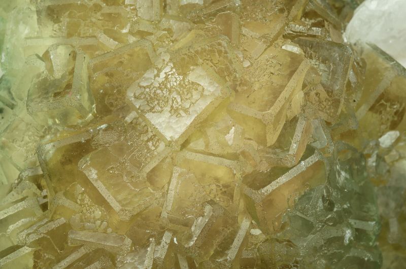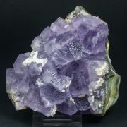 Fluorite with hydrocarbide inclusions, Baryte and Calcite