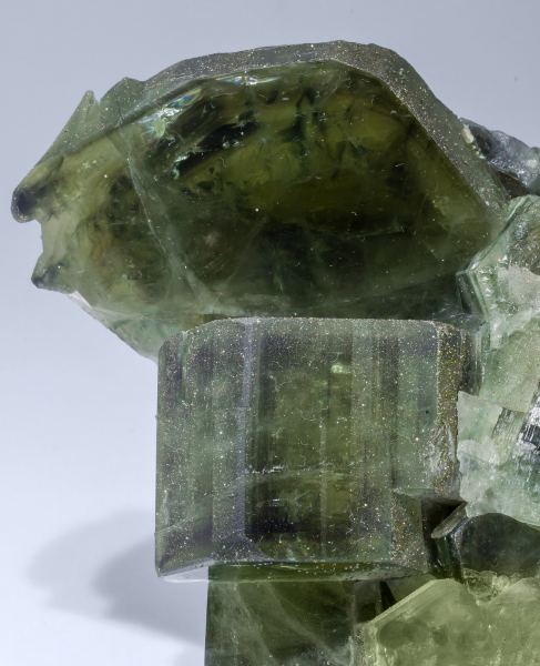 Group of Fluorapatite crystals with a thick tabular to short prismatic habit, translucent, with an intense green color with geometric color zoning, on matrix. With lenticular crystals of Siderite and small crystals of Pyrite. The specimen comes from a recent find in Panasqueira.Minas da Panasqueira, level 1, Aldeia de São Francisco de Assis, Covilhã, Castelo Branco, Cova da Beira, Centro Portugal (07-08/2020)