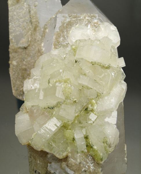 Quartz with Fluorapatite inclusions and with Muscovite, Siderite and Calcite