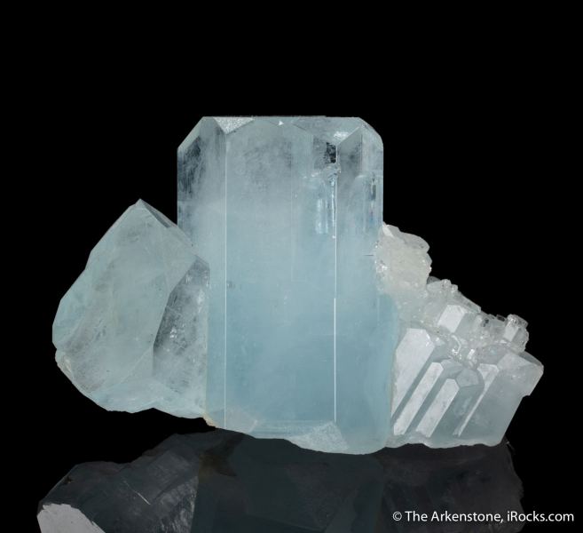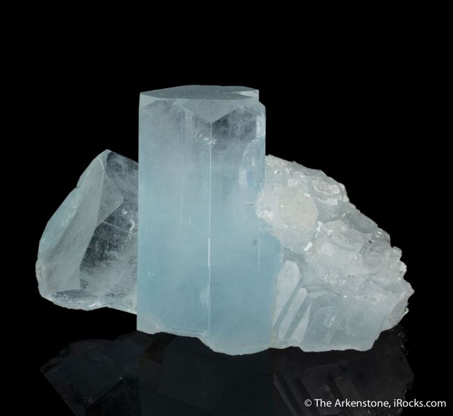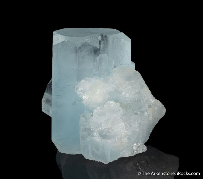 This is a Beryl var. Aquamarine from Chumar Bakhoor, Hunza Valley, Gilgit-Baltistan, Pakistan. This is a prominent Aquamarine crystal (with a sidecar crystal) along with a secondary growth cluster of Aquamarine that dominate this piece from the classic locale of Chumar Bakhoor in Pakistan.Data last checked on 29th Jul 2024 - specimen may no longer be available
