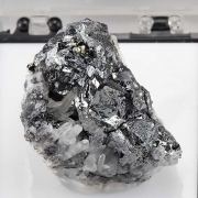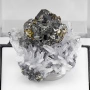 This is a Tetrahedrite, Hubnerite, Quartz and Pyrite from Mundo Nuevo Mine, Mundo Nuevo, Huamachuco, Sanchez Carrion Province, La Libertad, Peru. From a spectacular, one-time find at Mundo Nuevo several years ago comes this sparkling combination specimen of Hubnerite, Tetrahedrite, Pyrite and Quartz.Data last checked on 29th Jul 2024 - specimen may no longer be available
