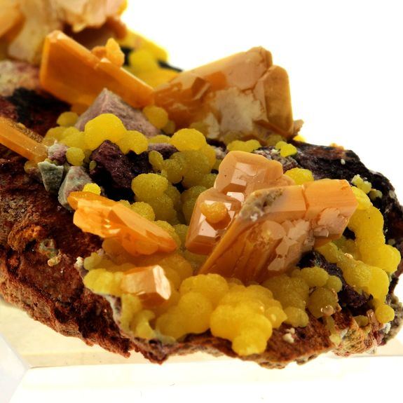 Wulfenite + Mimetite from La Morita Mine, Chihuahua, Mexico Comes with certificate of authenticity Average Weight (Carats) : 322.5 ct (with base) Dimension (mm) : 70 x 35 x 20 mm Réf. : SKU042814Data last checked on 31st Dec 2021 - specimen may no longer be available
