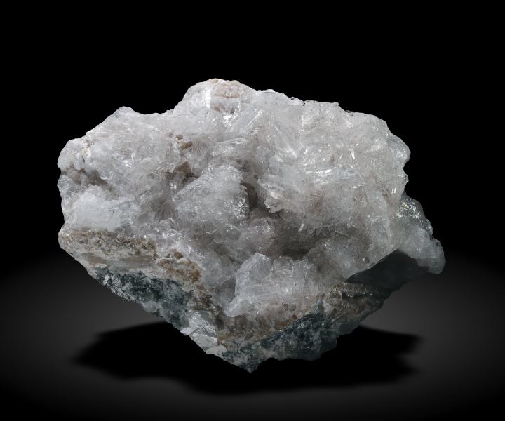 A novelty from the summer of 2021 and by far the best known for the species so far, in very sharp crystals, of large size, with a tabular habit and hexagonal outline, transparent, very lustrous, colorless, on matrix, associated with Andradite, pinkish Bultfonteinite and small white coatings of Tobermorite.The species have been analyzed and we will send a copy of the analysis to the buyer.
