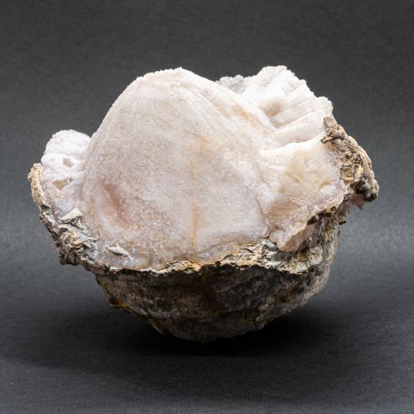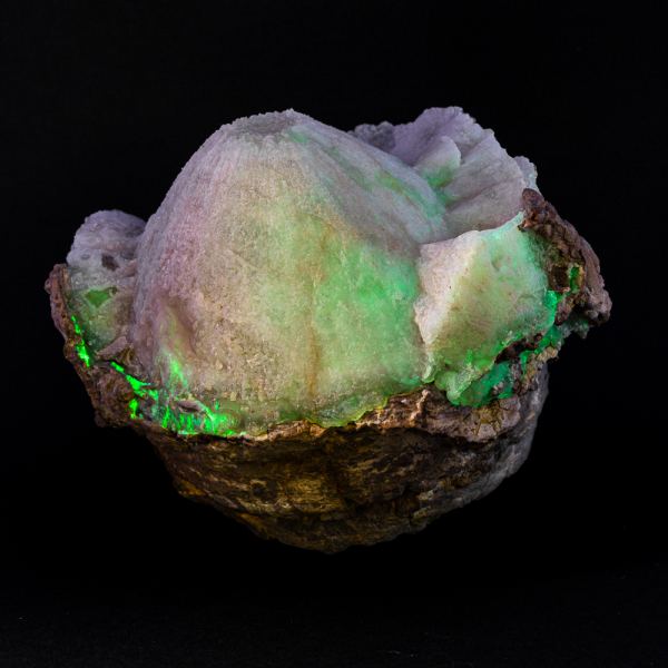 From a new find in Arizona: chalcedony has infilled the bi-cone/disc shape of the interior of a lithophysae leaving a negative (and hollow!) shape resembling a UFO! These specimens are fluorescent under shortwave light, though it seems that the most active layer may be in the interior hollow of the specimen.Data last checked on 31st Dec 2021 - specimen may no longer be available