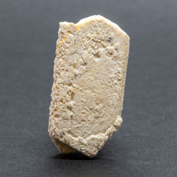 A classic Cornwall pseudomorph: kaolinite and fine-grained muscovite ("sericite") have replaced Carlsbad law twinned orthoclase in what has locally been nicknamed a "pig's egg." The specimen shows surface pitting (which is typical of this replacement). There is minor associated muscovite.Data last checked on 31st Dec 2021 - specimen may no longer be available
