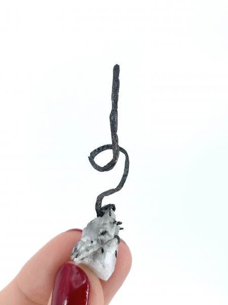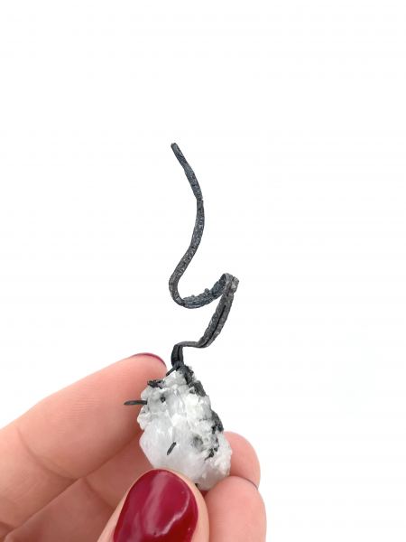 Silver wires growing out of a calcite, classic specimen from Kongsberg district. The wire is quite solid and has a pleasing twist. Kongsberg Silver Mining District, Buskerud, Norway