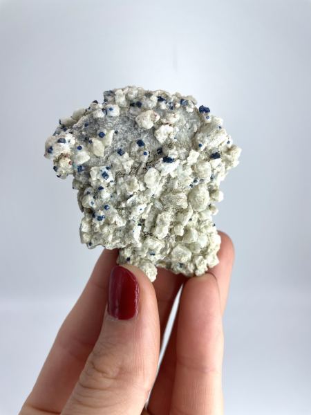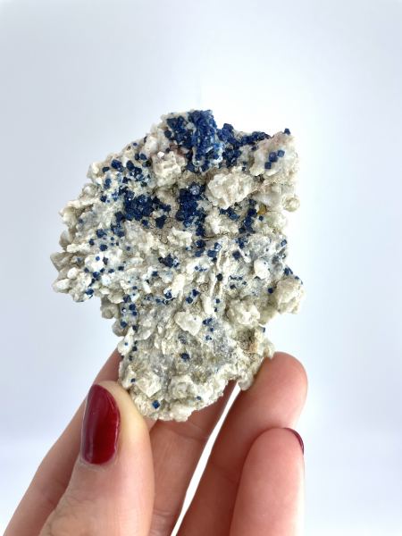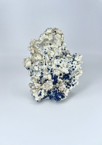 Bright blue boleite on what’s opaque Anglesite crystals. Amelia Mine, Arroyo de la Soledad, Boleo District, Santa Rosalía, Mulegé Municipality, Baja California Sur, Mexico