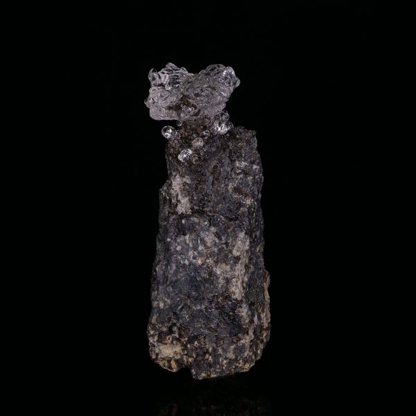 Superb group of hyalite forming like a flower on its matrix of Andesite. Beautiful aesthetics for this piece of quality. The crystals are gemstic, limpid and shiny. Very strong UV reaction for this variety of opal.