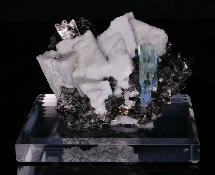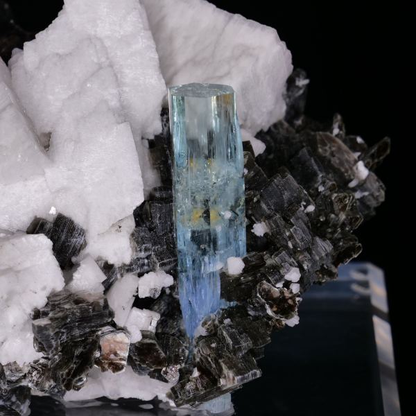 Beautiful Aquamarine crystal bi ending on brown Muscovite and Albite. Very nice contrast of color. The crystallization of Muscovite is also sublime.