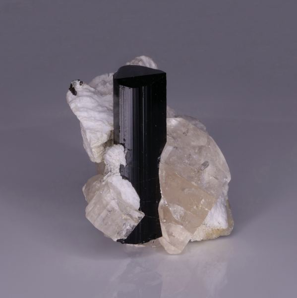 Very nice specimen of Schorl with Topaz. The Schorl has a very nice ending, the Topaz also well formed. Nice contrast of color.