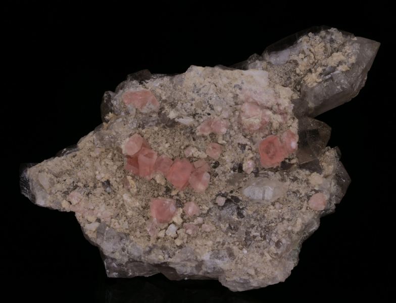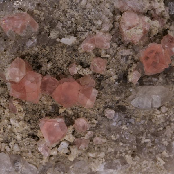 Pink FLUORITE on QUARTZ - Massif du Mont-Blanc, France (Ref: SZM0039)