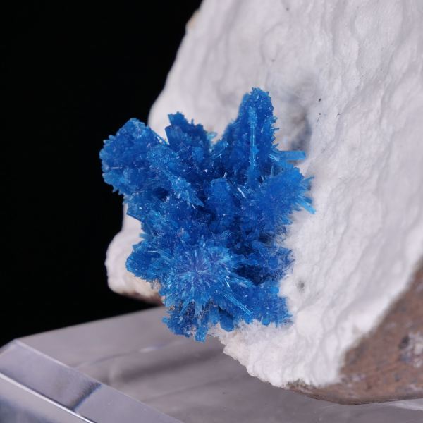 Sublime Pentagonite of an electric blue on its white gangue which offers a superb contrast of color. This piece is sold with its custom base.
