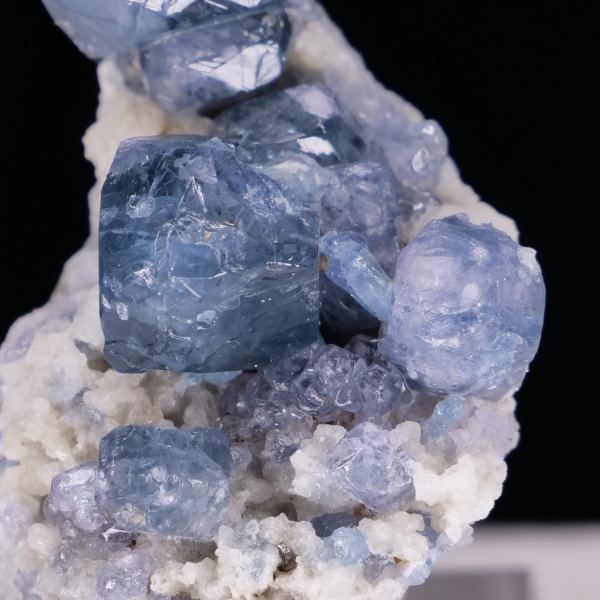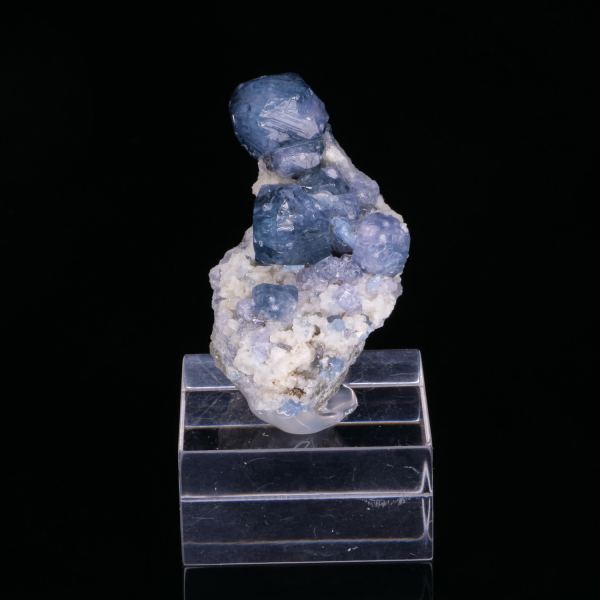 Very nice blue spinel crystals on matrix with a beautiful color contrast. The crystals are very pronounced blue, and appear «frosted» with their incredible brilliance.