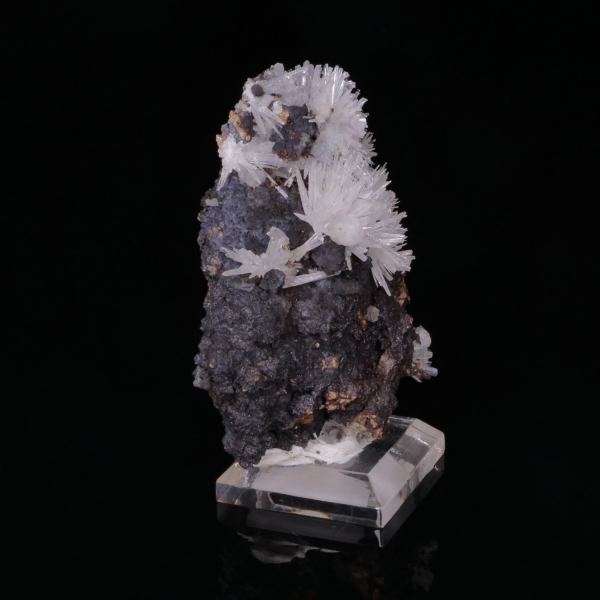 Very nice piece of aragonite shaped urchin with calcite in small spheres on black matrix that provides a beautiful color contrast. Beautiful crystallization!