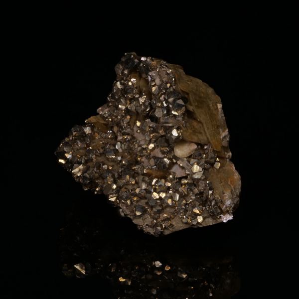 PYRITE and QUARTZ on SIDERITE - Mine de Mésage, France (Ref: SZM0484)