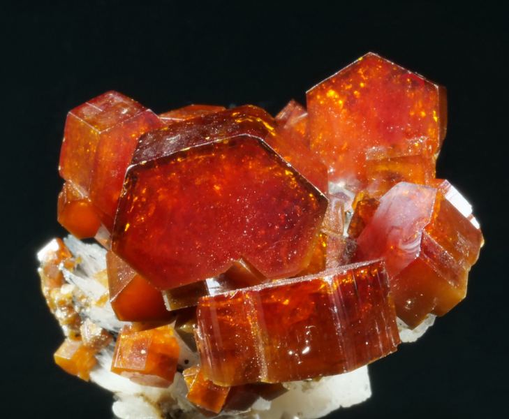 Sublime crystals of dark red Vanadinite on white gray Baryte from Morocco.