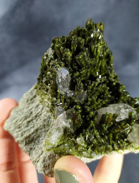 QUARTZ on EPIDOTE - Le Cornillon, France (Ref: SZM0227)