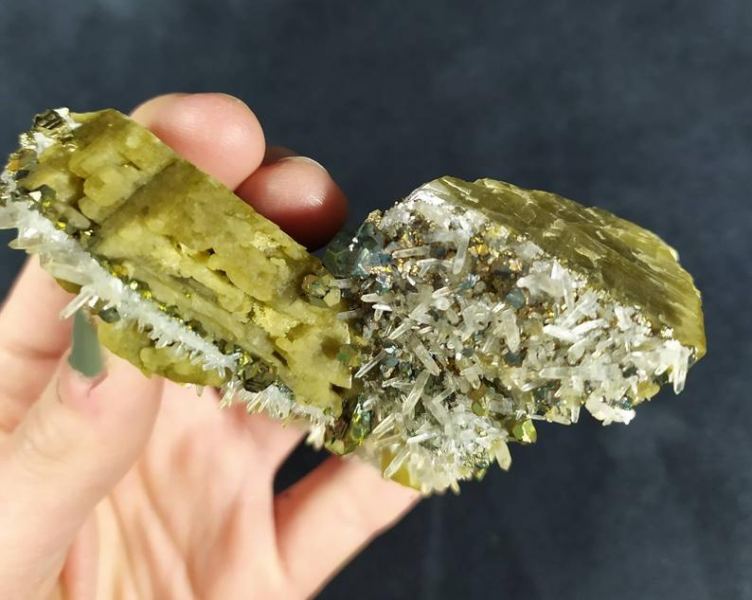Siderite, Quartz, Pyrite, Chalcopyrite.