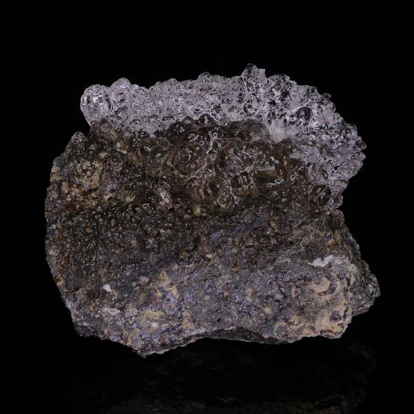 Sublime opal botroyoidal hyalitis forming like a crown on its matrix of Andesite. The quality of the crystals is splendid, they are gemstic, limpid, and very brilliant. Very strong UV reaction for this variety of opal.