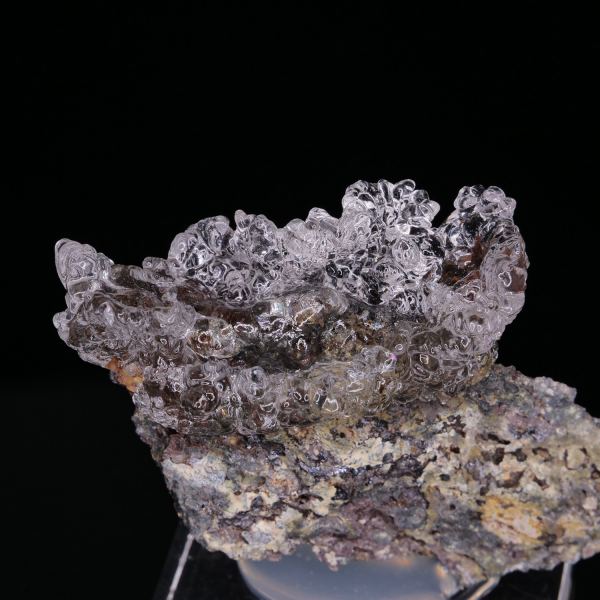 Sublime opal botroyoidal hyalitis forming like a crown on its matrix of Andesite. The quality of the crystals is splendid, they are gemstic, limpid, and very brilliant. Very strong UV reaction for this variety of opal.