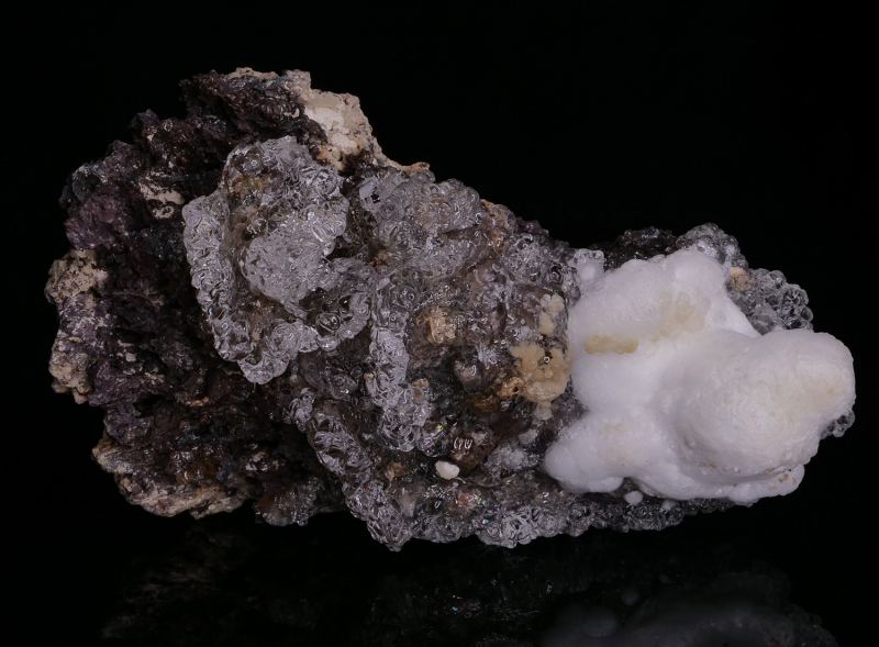 Very beautiful hyalite opal, with a strong UV reaction (becomes green flashy!). The quality of the crystals is splendid, gem, brilliant and offers beautiful aesthetics at the piece. Association with botryoid aragonite.
