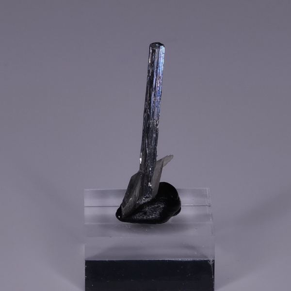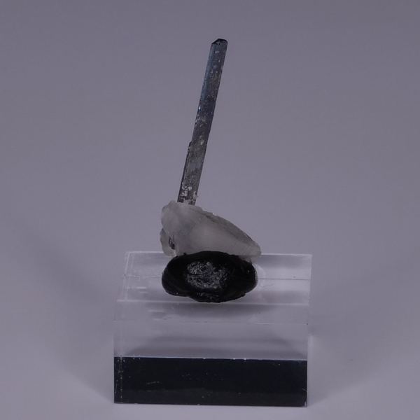 Very nice specimen with a shiny and intact stibin crystal crossing a calcite in "Chinese hat". Very aesthetic piece.