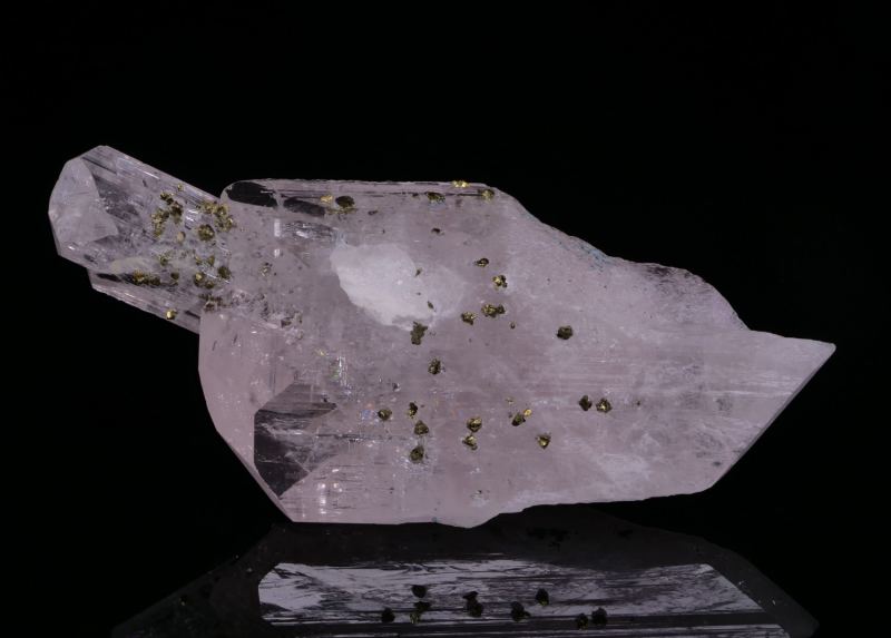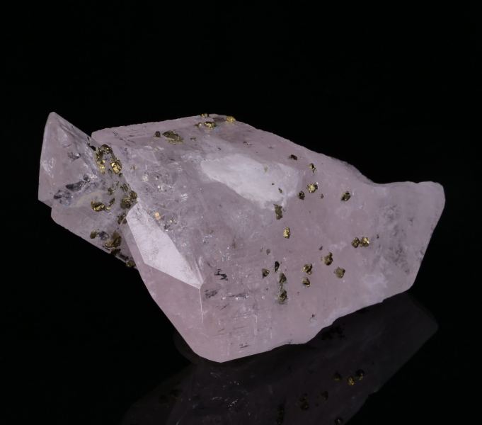Very beautiful and large crystal Danburite encrusted with pyrite above topped by a second crystal Danburite as well crystallized than the first. Beautiful pink color for this specimen.