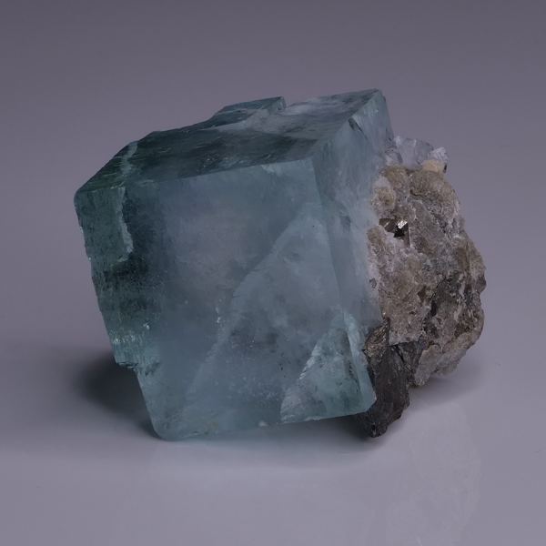 Very nice clear blue Fluorite cube associated with the Arsenopyrite.