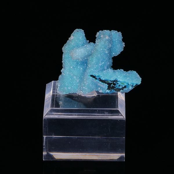 Superb specimen having undergone two phases of replacement: Azurite has been replaced by malachite, then malachite by the chrysocolla. The surface is encrusted with colorless quartz crystals that offer unclear shine to the piece. The crystals present on this piece are of good size and multiple.