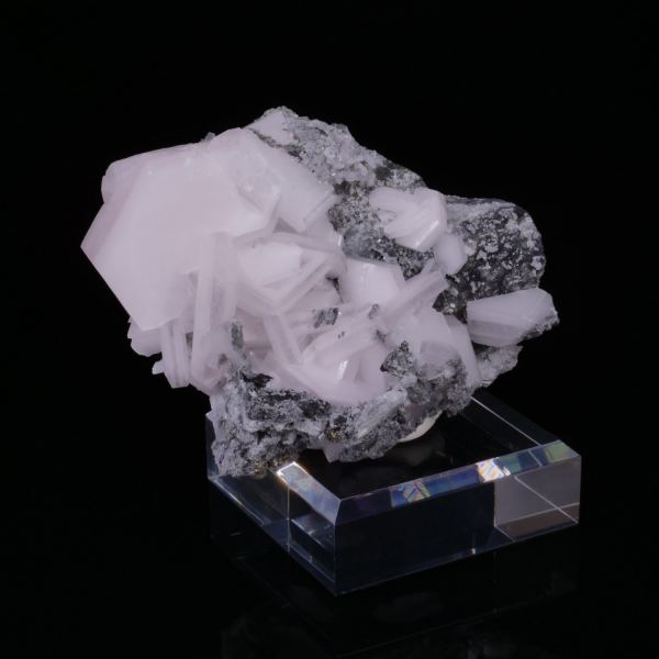 Magnificent set of Calcite "Sandwich" on matrix translucent, colorless with their center a gray band. These specimens react with long UV to reveal a beautiful pink color red flashy! New discovery.