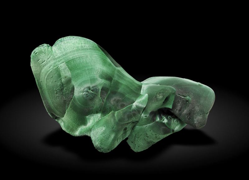 Botryoidal growths of very aesthetic Malachite shapes, with bands of different shades of green and an intense silky luster, which gives it a peculiar 'chatoyant' appearance.Shilu Mine, Yangchun, Yangjiang Prefecture, Guangdong Province China (±1995)