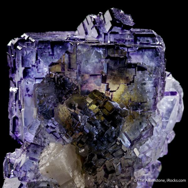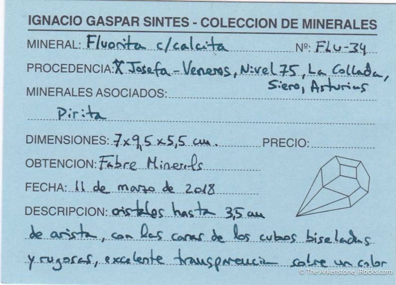This is a Fluorite on Calcite from Josefa-Veneros vein, 75 level, La Collada mining area, Asturias, Spain. A significant example of the famous patterned purple fluorites found in the 1970s at this classic Spanish location for fluorite, calcite, and associated species.Data last checked on 29th Jul 2024 - specimen may no longer be available