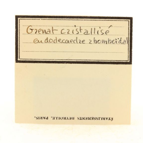 Almandin Garnet (old label, collection Antoine Pol 1888-1971) from Collobrieres, Var, France Comes with certificate of authenticity Average Weight (Carats) : 76.0 ct Dimension (mm) : 16 x 17 x 20 mm Réf. : SKU038153Data last checked on 31st Dec 2021 - specimen may no longer be available