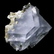 Here we have a fine specimen with two, slightly intergrown cuboctahedral major crystals of Fluorite set atop carbonatic matrix. They are showing a super luster and extremely sharp, partially bevelled edges. A very aesthetic and almost pristine piece with gemmy Fluorite crystals associated with an undeterminated acid-green species and a few smaller Fluorites as well.Data last checked on 31st Dec 2021 - specimen may no longer be available