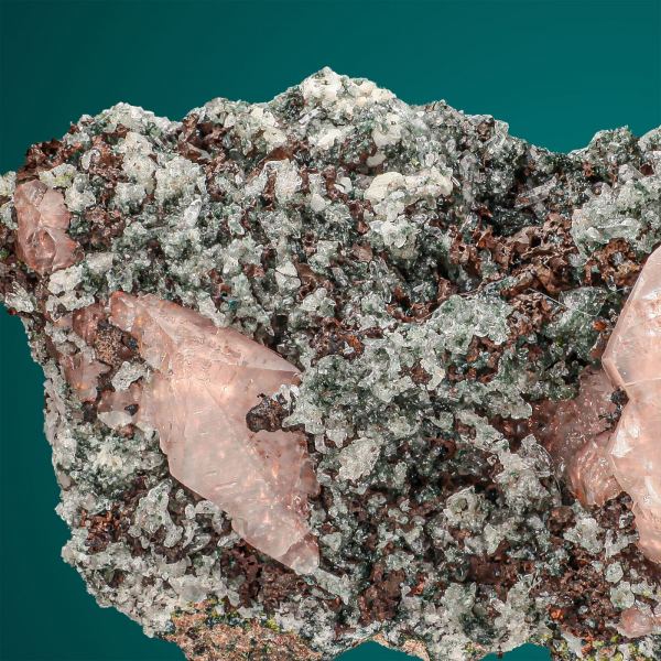 This is a contrastful specimen of native Copper included in well developed Calcite crystals. Michigan Copper in Calcite specimens are certainly one of the most desirable Calcite varietals in the world. Most of them were produced prior to World War I. Bright Copper within glassy, striated Calcite scalenohedrons presents a unique and very beautiful Calcite specimen. This classic and aesthetic, old-timer features four, glassy, highly lustrous and striated, richly filled, Copper in Calcite crystals beautifully perched on matrix, which is scattered with hooky Copper and minor Epidote. The scalenohedrons are almost pristine and top terminated. This is an excellent, old-time representation of this very desirable Calcite varietyData last checked on 31st Dec 2021 - specimen may no longer be available