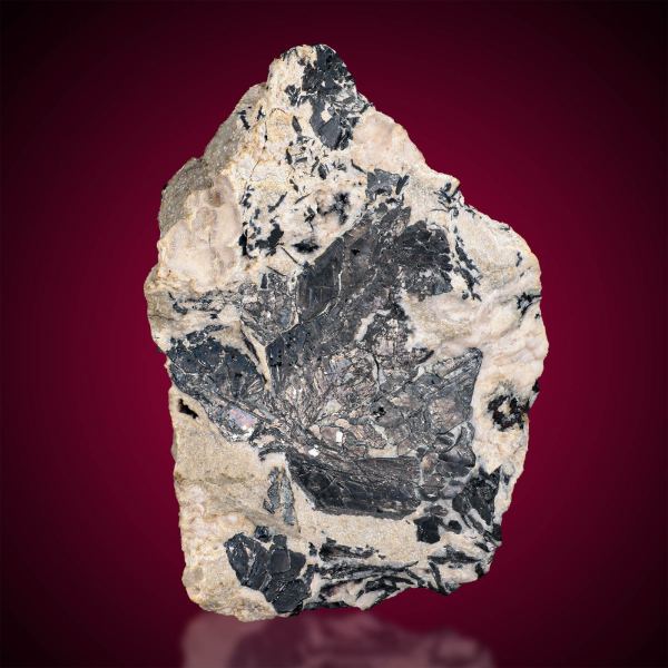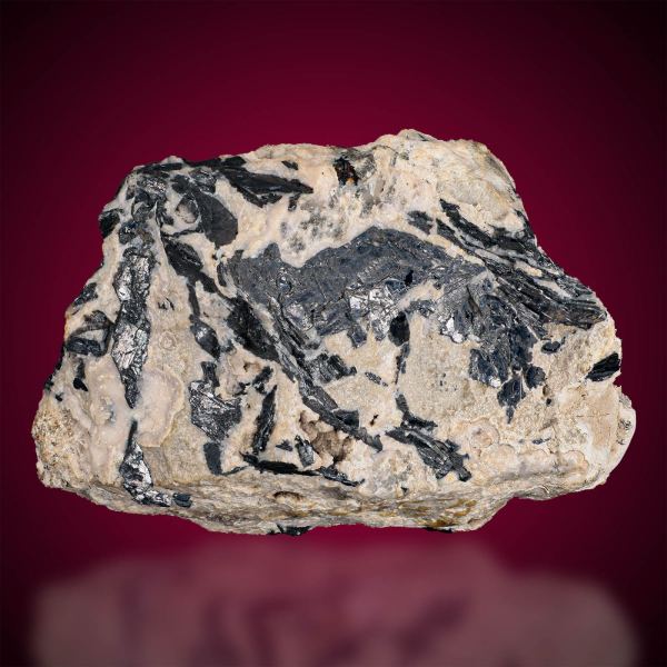 This is a superb specimen of rare lead-gold-tellurium-antimony sulfide Nagyagite and it lives up to its old German miner name ´Blättertellur´ ( leave-tellurium). It is from both sides richly perched with excellent bladed, slightly six-sided crystals. Usually it is an ugly matter for academic collectors only but this is a beautiful specimen with sexy, lustrous, large Nagyagite crystals untainted by etching from Calcite using acid (as is so often the case). The luster and metallic look is phenomenal and appealing, The contrast to pale pink Rhodochrosite and white Quartz makes the piece even better. This amazingly rich specimen of Nagyagite is quite simply one of the very best I have ever seen for sale by a long shot. Nagyagite is an extremely rare mineral and this is from the type locality, probably dating to the late 1800s. This piece is relatively large, beautiful, and displays a shocking 2,8 cm long ridge of flat but extremely sharp crystals. This is an outsanding specimen for highest demands.Data last checked on 31st Dec 2021 - specimen may no longer be available