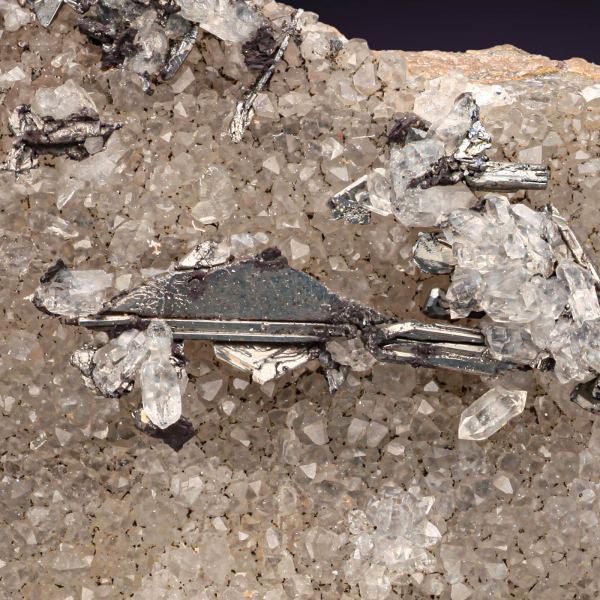 Here we see a superfine specimen with numerous of well developed, sharp and mirror bright crystlas of Sylvanite scattered over the matrix. Sylvanite, the rare silver and gold telluride, was discovered here at this type locality in 1835. It is known at its best for this surreal, metallic-organic growth that seems to have pattern, when crystallized at we see here. More technically speaking, these are flat-lying crystals in the form of typical graphic intergrowths (´Schrifterz´). The effect is bizarre, and beautiful. Good handsized specimens from this type locality, most surely dating to the 1800s, are extremely hard to obtain today on the market. According to MINDAT: Named after the Transylvania region of Romania, where it was first found, and Sylvanium, one of the names proposed for the newly discovered element tellurium, which it contains.Data last checked on 31st Dec 2021 - specimen may no longer be available