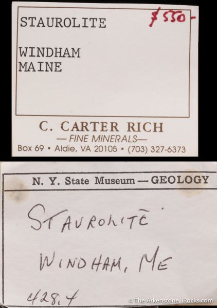 This is a Staurolite from Windham, Cumberland Co., Maine, USA. Here is an old-time Staurolite cluster nicely set on, and in, a schist matrix from the classic Cook Road Staurolite locality in Maine.Data last checked on 29th Jul 2024 - specimen may no longer be available