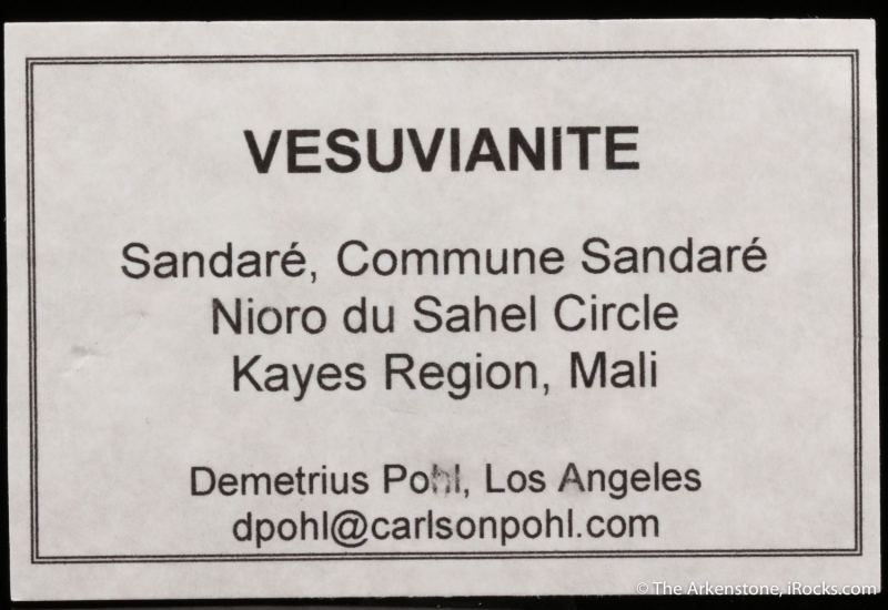 This is a Vesuvianite from Sandare, Nioro Cercle, Kayes Region, Mali. This is a very fine stacked, columnar grouping of Vesuvianite crystals from Mali.Data last checked on 29th Jul 2024 - specimen may no longer be available