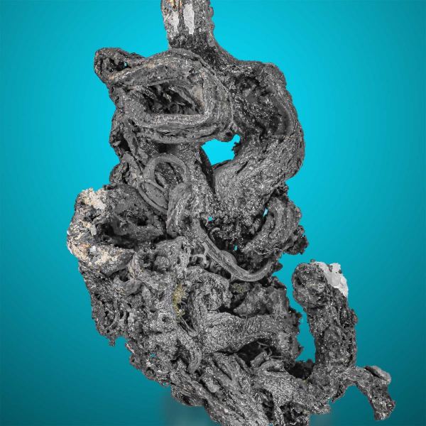 A superb Silver specimen from the old and famous Mildigkeit Gottes Mine of Kongsberg in Norway. A piece like this shows exactly why Kongsberg is the supreme ruler when it comes to large, thick, so-called ropes of native Silver. This small cabinet sized specimen is the textbook example of a classic elegant Silver wire from Kongsberg. It is thick and ropey, with great curving character and superb coating with Acanthite, what gives the specimen it´s great metallic grey colour. One thick major wire is growing out of the jumble of wires and seems to sit enthroned on them. The base of the piece is accented with fragments of Calcite what is typical for the locality. A stunning piece with great aesthetics. The silver mines in Kongsberg were in operation from 1623 until 1958. At its peak, more than 4000 people worked in the mining industry in Kongsberg (1770) and they are now protected as historical sites, collecting inside the mines and outside on the dumps is illegal.Data last checked on 31st Dec 2021 - specimen may no longer be available