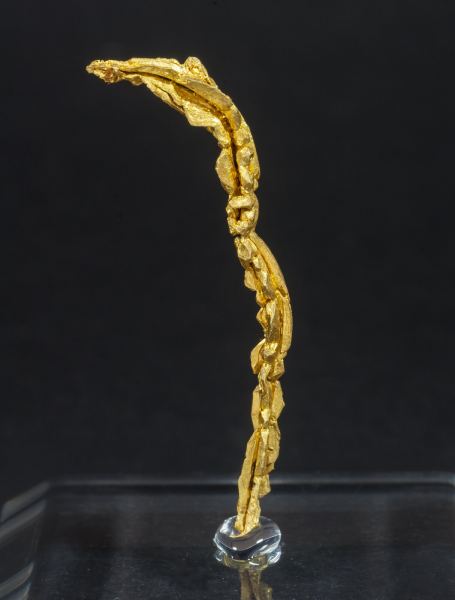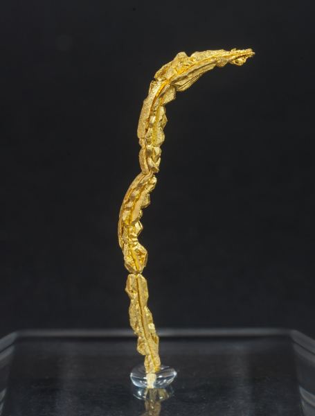 Parallel, twisted and very stylized growth of Gold crystals of well defined morphology, with the dominant forms of the octahedron, with distinct spinel-law twins and with curious hooked terminations. The material has been carefully analyzed and we will send a copy of the analysis to the buyer.