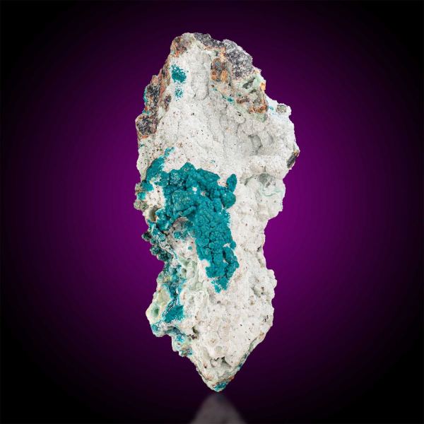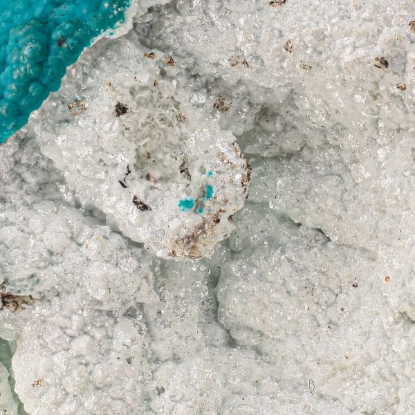 Wow, what a great specimen,- a super old-timed piece of extremely rare cadmium carbonate Otavite, typically accompanied by botryoidal blue-green Rosasite. This fact gives this outstanding specimen a super contrast, blaze of colour and aesthetics, unusual good for the species. Here you see glistening cream-white microcrystals richly covering the COMPLETE obviously Smithsonite bearing matrix. Otavite was firstly discovered at Tsumeb by Otto Schneider in 1906 and named after the Otavi Highlands. I have seen several ´so-called´ Otavites over years. After analysis, most of them turned out to be just strange looking Aragaonite or what ever. But this specimens is analysed as well and turned out as real Otavite. This is a killer piece all the way, SUPERRARE and probably among the finest analysed ones at all.Data last checked on 31st Dec 2021 - specimen may no longer be available