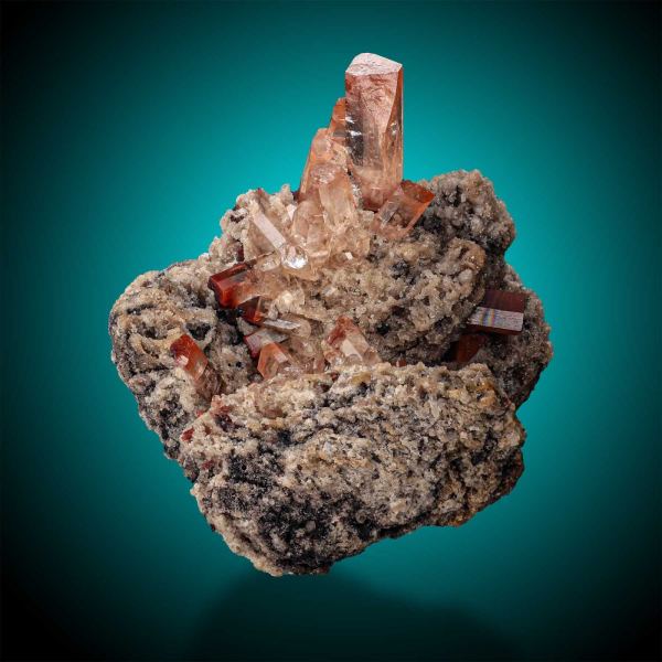This is a super specimen of gemmy and lustrous, sherry-coloured Topaz crystals aesthetically set atop mounded matrix. The crystals are excellent defined, razor sharp and gemmy. The crystals reach 1,7 cm have perfect, complex and also gemmy terminations. This is a super aesthetic specimen from Tepetate of San Luis Potosí in Mexico. Choice material hard to come by nowadays, especially in this great quality.Data last checked on 31st Dec 2021 - specimen may no longer be available