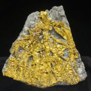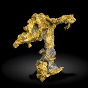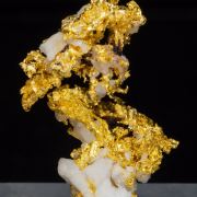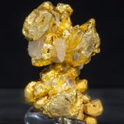 This is a Gold on Quartz from Motherlode District , Grass Valley, Nevada Co., California, USA. A large gold thumbnail specimen featuring antique-style, robust, sharp crystals perched on a bit of quartz matrix, from the famous old Motherlode District of Northern California.Data last checked on 26th Aug 2024 - specimen may no longer be available