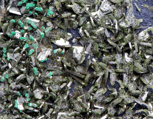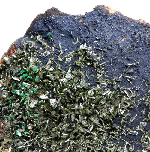 Olivenite with Malachite, Pseudomalachite, Goethite, Quartz